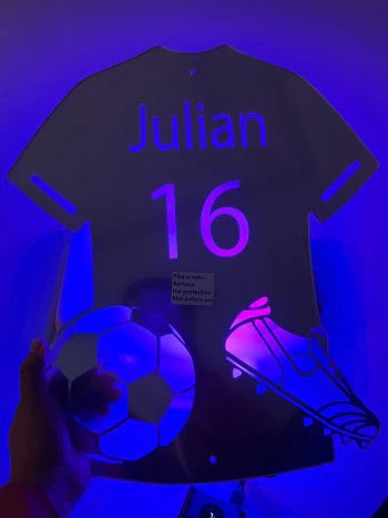 Tu hijo verá su nombre iluminarse, igual que sus jugadores favoritos. Un detalle mágico que hace que este regalo sea todavía más especial.